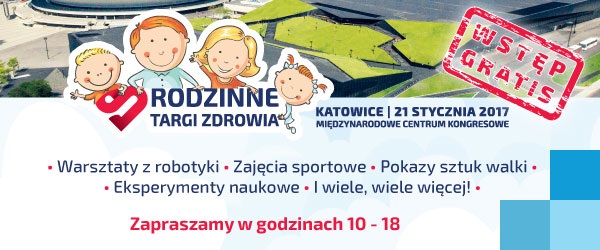 Z Bliskimi po Zdrowie! Organizowane w samym sercu Górnego Śląska, w katowickim Międzynarodowym Centrum Kongresowym. Ponad 150 wystawców z najróżniejszych dziedzin związanych ze zdrowiem, kilkanaście tysięcy osób, które w naszych Targach będą brały aktywny udział i dla których organizowane jest to wydarzenie. Rodzinne Targi Zdrowia są wydarzeniem całkowicie darmowym dla wszystkich odwiedzających osób. Serdecznie zapraszamy całe rodziny. Niech 21 stycznia 2017 będzie dniem szczególnym. Uczestnictwo w naszych Targach będzie idealną okazję na spędzenie Dnia Babci w rodzinnej i ciepłej atmosferze oraz wyrazem troski o najbliższych. Na terenie Targów będzie można znaleźć miejsca do zabawy i nauki dla najmłodszych czy z drugiej strony miejsca porad i darmowych badań lekarskich dla wszystkich zainteresowanych. Ponadto, w czasie trwania Targów będą miały miejsce interesujące pokazy i konkursy, w których brać będą mogli udział wszyscy uczestnicy naszego wydarzenia. To wszystko sprawia, że mówiąc o Rodzinnych Targach Zdrowia 2017, mówimy o wydarzeniu całkowicie bezprecedensowym, którego w południowej Polsce jeszcze nie było. Więcej informacji na stronie: targizdrowia.com.pl