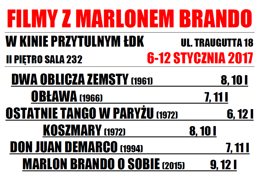 12 stycznia - Łódź: Filmy z Marlonem Brando w Kinie Przytulnym | więcej... |